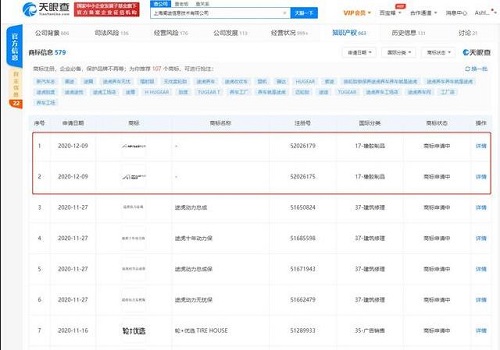 近日,途虎關聯公司上海闌途信息技術有限公司新增申請“阿波羅”“APOLLOFILM”的圖形商標。申請日期均在12月9日,國際分類為橡膠制品,商標狀態顯示為“商標申請中”。