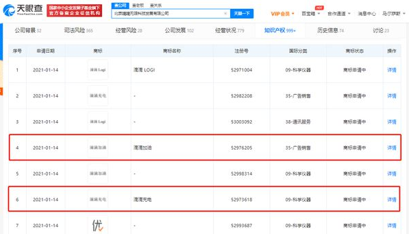 近日,北京嘀嘀無限科技發(fā)展有限公司申請注冊了名為“滴滴充電”、“滴滴加油”的商標(biāo),商標(biāo)注冊分類涉及廣告銷售、科學(xué)儀器等,申請時間為2021年1月14日,商標(biāo)狀態(tài)均為“商標(biāo)申請中”。