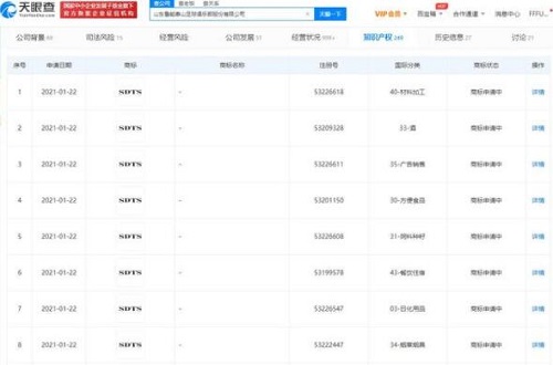 近日,山東魯能泰山足球俱樂部股份有限公司申請注冊了多條“SDTS”商標,目前商標狀態為商標申請中。