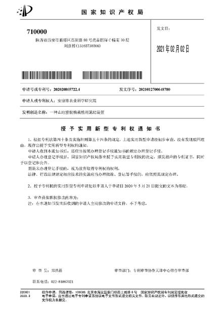 近日,安康市農科院果蔬所申報的一項“一種山地獼猴桃栽植用施肥裝置”實用新型專利成果獲得國家知識產權局授權,專利號為202020865722.4。