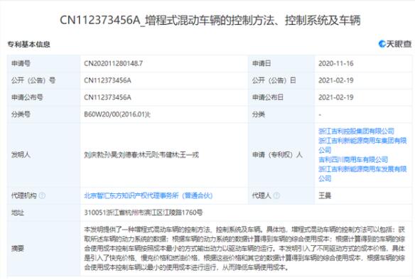 浙江吉利控股集團(tuán)有限公司公開了一名為“增程式混動車輛的控制方法、控制系統(tǒng)及車輛”的發(fā)明專利,專利申請時間為2020年11月16日。