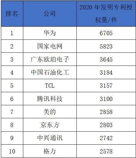 當(dāng)然,這并非TCL的全部實(shí)力,TCL華星光電專利數(shù)量所代表的僅僅只是TCL全部專利中的冰山一角。在這一榜單的基礎(chǔ)下,根據(jù)Patentics、Joveeye、incoPat等多個權(quán)威平臺所發(fā)布的專利數(shù)據(jù)內(nèi)容整合統(tǒng)計,“2020年國內(nèi)企業(yè)發(fā)明專利授權(quán)量排行榜(TOP100)”新鮮出爐。