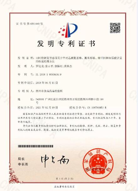 近期,梧州市食品藥品檢驗所再獲得一項發明專利“同時檢測復方感冒靈片中對乙酰氨基酚、氯苯那敏、咖啡因和綠原酸含量的快速檢測方法”,此項專利是我所科研創新的有效實踐,代表我所科研技術的又一次騰飛。