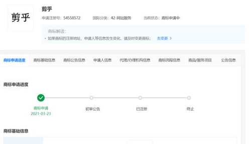 近日,知乎關聯公司智者四海(北京)技術有限公司申請注冊“剪乎”商標,國際商標分類涉及科學儀器、廣告銷售、通訊服務等,目前商標狀態為商標申請中。