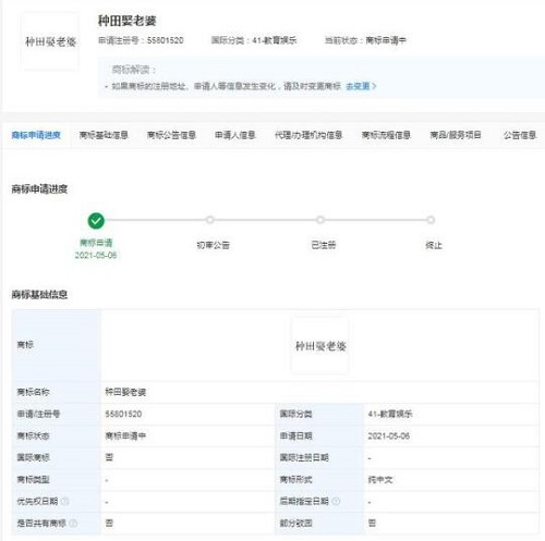 近日,北京有竹居網絡技術有限公司申請注冊“種田娶老婆”商標,國際分類為科學儀器、教育娛樂,商標狀態為“商標申請中”。該公司為字節跳動(香港)有限公司全資子公司。