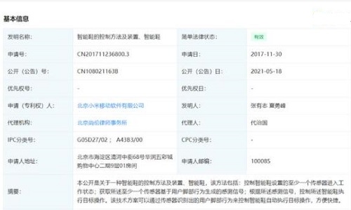北京小米移動軟件有限公司被授權發明專利“智能鞋的控制方法及裝置、智能鞋”,專利公開號為CN108021163B,企查查專利摘要顯示,本公開是關于一種智能鞋的控制方法及裝置、智能鞋,該方法包括:控制智能鞋設置的至少一個傳感器進入工作狀態;獲取所述至少一個傳感器基于用戶腳部行為生成的感測信號;根據所述感測信號,控制所述智能鞋執行目標操作。該技術方案可以通過傳感器識別出的用戶腳部行為來控制智能鞋自動執行目標操作,方便快捷。