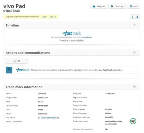 vivo在歐洲低調注冊了vivo Pad商標,該名稱已經出現在了歐盟知識產權局,這意味著vivo有望帶來平板電腦新品。