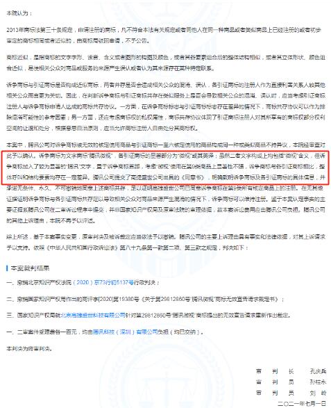 騰訊科技(深圳)有限公司公開多條與國家知識產權局等二審行政判決書公開,案號分別為(2021)京行終2833號、(2021)京行終2839號、(2021)京行終2690號,審理法院均為北京市高級人民法院。