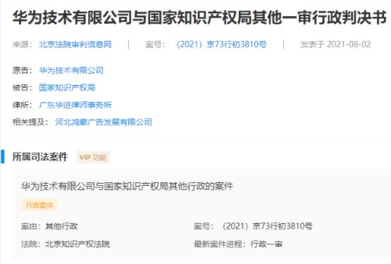 8月2日,華為技術有限公司與國家知識產權局其他一審行政判決書公開。