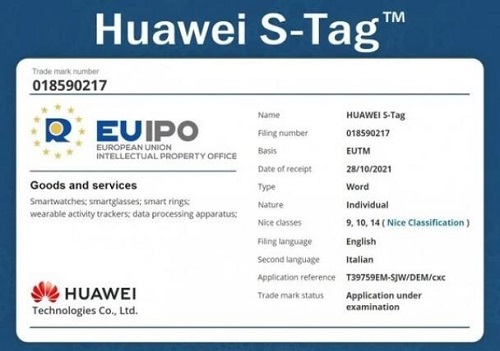 據(jù)外媒消息報(bào)道,2021年10月28日,華為向歐盟知識(shí)產(chǎn)權(quán)局申請(qǐng)了“華為S-Tag”的商標(biāo)。