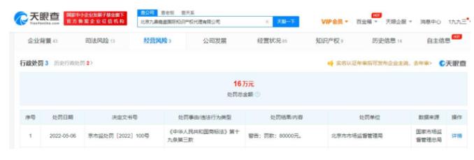 天眼查APP顯示,近日,北京九鼎嘉盛國際知識產權代理有限公司因違反商標法,被北京市市場監督管理局罰款8萬。具體處罰事由為,當事人作為商標代理機構,受多個代理人委托注冊申請“冰墩墩”商標,損害了北京2022年冬奧會和冬殘奧會組織委員會現有的在先權利,造成了不良社會影響,給予從重處罰。
