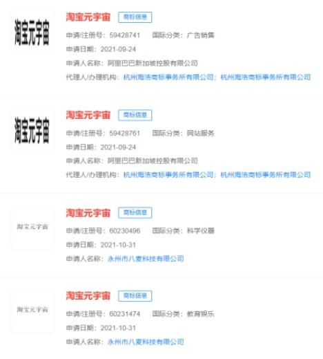 阿里已申請多個淘寶元宇宙商標
